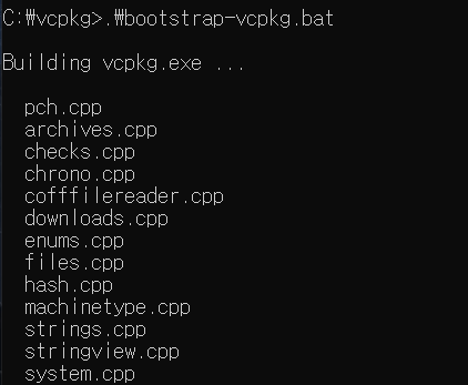 Building vcpkg.exe... done. 이 뜨면 성공.
